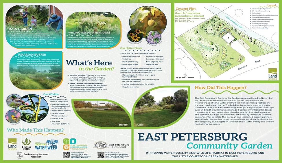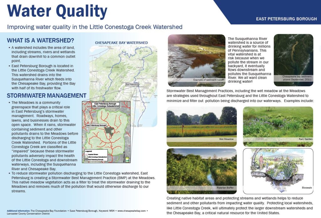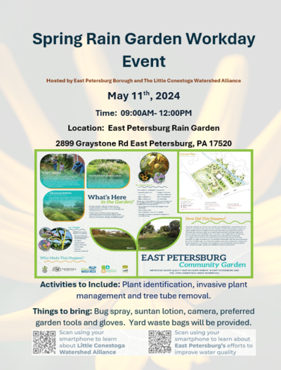 This page is designed to provide Borough citizens with quick access to information and resources to preserve and protect clean water in the borough and the Lancaster County regional community. East Petersburg borough is actively involved in a variety of programs and initiatives to meet various Statewide and National goals for clean water. Local residents have a role to play too, which when combined together will have a positive impact on our environment, and the water that is so important to us all.