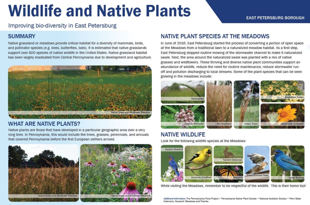 Storm water originates from rainfall and other precipitation that runs off surfaces all over the Borough – rooftops, streets, construction sites, lawns, fields, etc. Storm water makes its way into swales, storm drains, natural water courses, and it literally takes everything loose on the ground with it when it rains…pollutants, sediment, leaves, trash, etc. The borough is actively involved in meeting statutory permitting requirements under state and federal law. The borough is also active with partners in a variety of programs and strategies to enhance water quality through plantings, mowing strategies, implementation of storm water management facilities, and other “best management practices” (BMPs).
