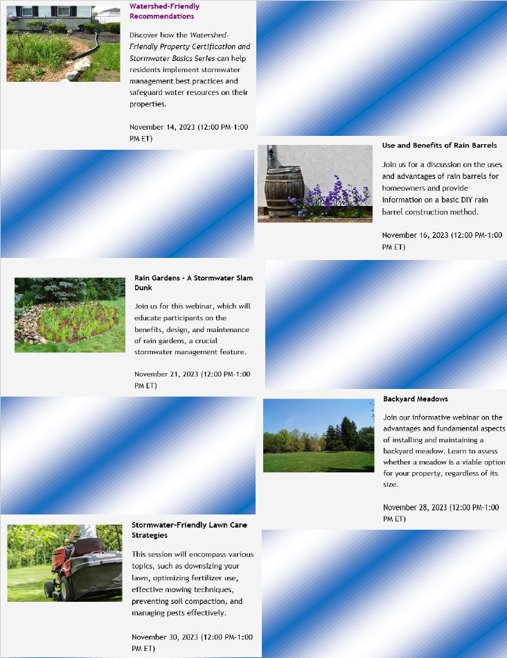 Please see the two articles listed above under “Documents”- Reducing Stormwater Costs through Low Impact Development (LID) Strategies and Practices & DEP Swimming Pool Discharge Recommendations for what you can do now to reduce discharge pollutants in the Borough.